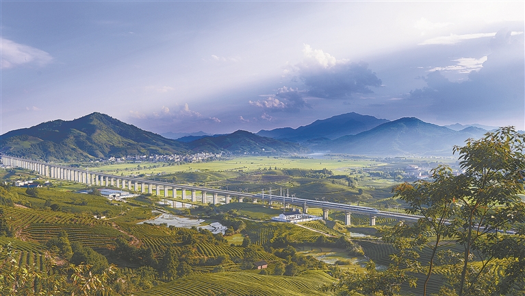 Wuyi is renowned for producing fine tea. The lush mountains and clear waters of Wuyi Mountain are lined with tea plantations. At the foot of the mountain lies Xiamei Ancient Village, a village of significant historical and cultural value in China and the starting point of the "Ancient Tea Horse Road." The ancient path, filled with the aroma of tea, tells tales of the past—when tea merchants and cargo boats bustled day and night along the Meixi River. Today, centuries later, the merchant boats are gone. In their place, silver high-speed trains glide through the endless sea of tea fields, weaving through the green waves, carrying tourists who come to admire the scenery and seek out fine teas.