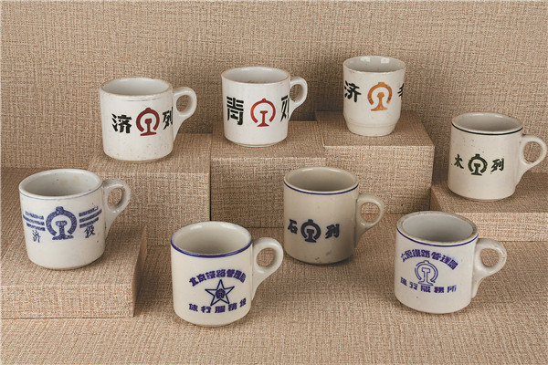 客运服务专题中,有各种搪瓷茶杯,印有“青列”“济列”“徐列”等字样。这些都是过去列车上供旅客使用的茶具。