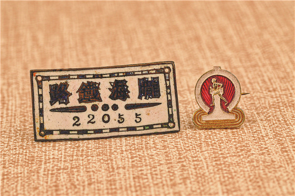 铁路徽章专题展品。 王 敏 摄