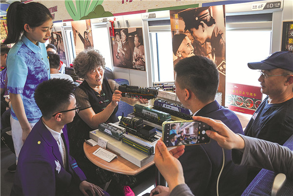 在国际博物馆日到来前,5月15日,在青岛北开往青岛北的G6955次环线列车上,旅客们惊喜地发现,他们不仅可以乘车到达目的地,而且可以尽情欣赏不同年代、不同专题的铁路文物。