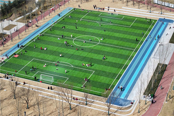 这是2月15日拍摄的西安红旗铁路公园内的足球场地(无人机照片)。新华社记者 邵瑞 摄