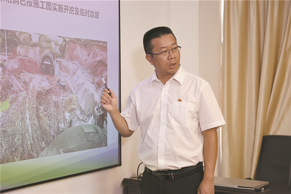 图为杨利林在介绍隧底处理方案。杨梦旗 摄