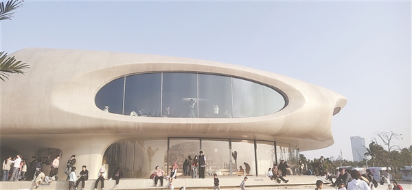 出租车刚刚驶上大桥,远远就看见一幢白色二层建筑温柔地匍匐于海口世纪公园音乐广场西北侧,像一朵巨大的白云飘落在大海边。