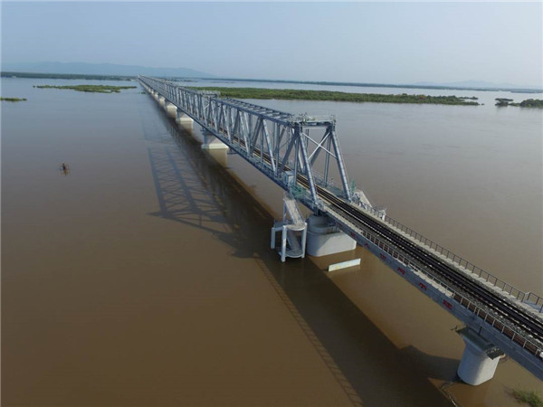 8月17日9时58分,在同江中俄黑龙江铁路大桥施工现场,随着中俄两国准轨接口最后一组轨道夹板安装完成,标志着中俄两国首座跨江铁路大桥——同江中俄黑龙江铁路大桥...
