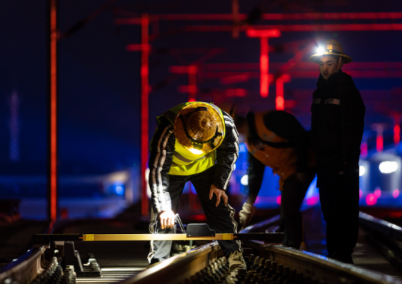 “往外走1毫米!”“往里走0.5毫米!” ……,一声声指令打破了兰新高铁线上夜晚的宁静。10月3日凌晨,在军马场至浩门区间,一群身着劳保大衣的作业人员正在用精密...