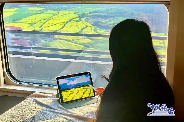 人民日报微博:收藏!#列车邂逅春日限定版花海#