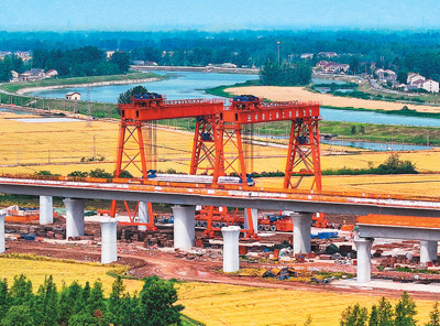 人民日报海外版:宁淮城际铁路顺利完成首孔箱梁架设