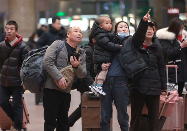 1月14日,北京西站,旅客在候车时拍照留念。中国日报记者 邹红 摄