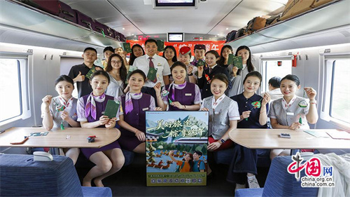 5月28日上午,在端午节即将来临之际,中国铁路济南局集团有限公司(以下简称:国铁济南局)青岛客运段联合山东济铁旅行服务有限公司青岛高铁分公司在青岛开往上海虹桥的G232次列车上举办“美好旅途 ‘粽’享端午”主题活动,乘务人员精心准备了亮点纷呈的歌曲和舞蹈,把非遗手作端午荷包和五彩绳送给旅客,把飞驰的高铁列车化身传承和发扬中华优秀传统文化的驿站,让旅客们度过了一个与众不同的端午节。