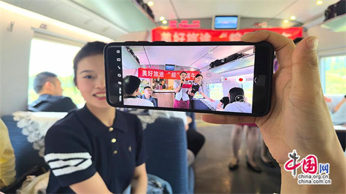 活动中,婀娜多姿的民族舞、优美动听的流行音乐等精彩纷呈的节目接连上演,活动气氛逐渐升温,推向高潮,车厢里响起阵阵掌声,旅客们纷纷举起手机录像。“临近端午,我提前休了年假准备回老家陪家人度过端午,没想到在车上观看了精彩的节目,让我度过了一个别有风味的节日。”在青岛工作的南京人胡伟说道,他把五彩绳绑在手上,举起贺卡自拍,搭配上祝福发在朋友圈中,获得多个朋友的点赞。