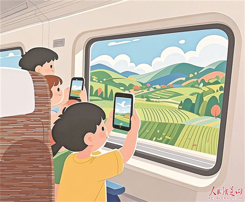又逢周末,许多小旅客随家长坐上高铁,开启假日之旅。当列车穿越田野阡陌,小“摄影家”们兴奋地用手机记录下他们眼中的铁路风景,再扫一下车窗上的二维码,孩子们的“大作”就在各大网络平台精彩亮相了。