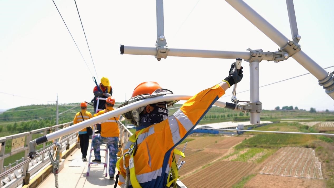 简统化接触网也被称为中国标准接触网,它是整套动力系统的关键组成部分。列车通过受电弓与接触网上的接触线接触,把电力传导到动车组上驱动列车“贴地飞行”。