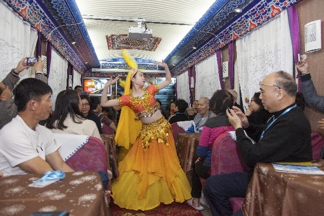 兰州局集团公司通过在列车上嵌入各种旅游应用场景,将旅游资源与列车出行体验相结合,把枯燥的乘车时间转换为自由舒适的第三空间,变“出行”为“出游”。优化列车运行图,设计开行在旅游交通结点之间的列车游专线,通过环线班列、专线班列和图定班列,实现沿线旅游资源特色化连线,火车游与景区板块化联动。通过车上游览,车下游玩的方式,使火车游成为一种全新的旅游业态。