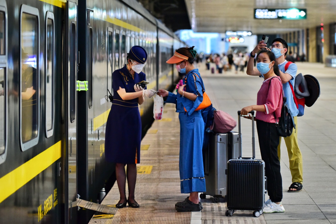 旅游专列充分展示了铁路企业的高品质服务,不仅推动了新疆文化和旅游产业的深度融合发展,还取得了良好的经济效益和社会效益。为更好地推动疆内旅游快速发展,乌鲁木齐局集团公司还向南北疆热门方向图定化开行了“喀什号”“阿勒泰号”旅客列车以及乌鲁木齐至伊宁、库尔勒、克拉玛依三趟“一站直达”精品城际列车,为广大自由行游客提供了更多服务选择。