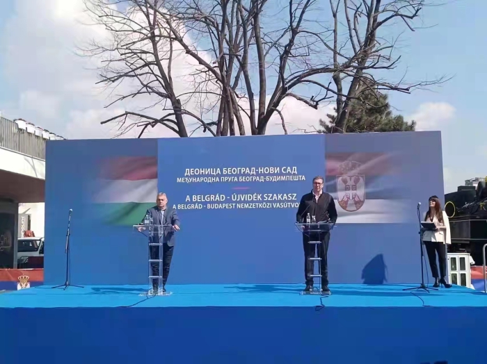 塞尔维亚总统武契奇和匈牙利总理欧尔班出席匈塞铁路贝尔格莱德至诺维萨德开通仪式
