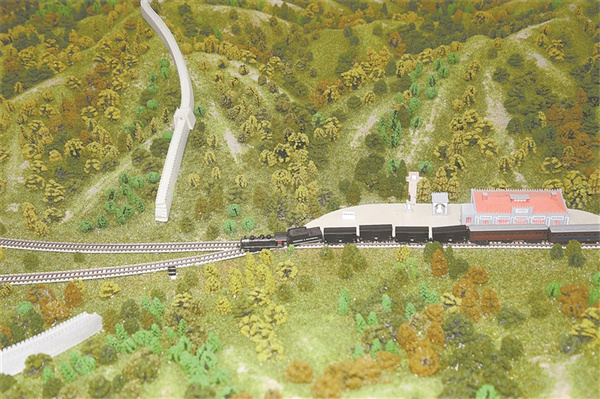京张铁路记忆馆内展陈的京张铁路“人”字形线路沙盘。高 磊 摄
