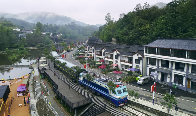 A train stops by a tourist area in Luanchuan county in Central China's Henan Province on Tuesday. China State Railway Group, the state railway company t...