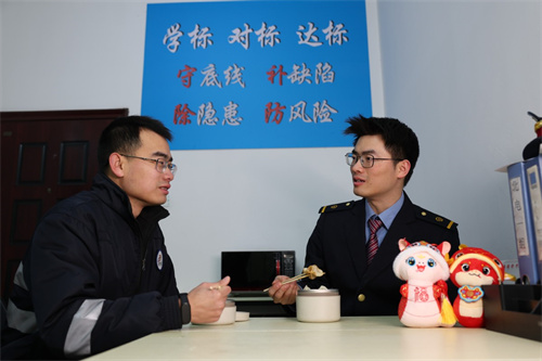 兰天赐完成退勤作业后,来到间休室,弟弟拿出热好的饺子,递给哥哥。两人吃着饺子,闲聊家常。这短暂的相聚时光,是春节期间迟来的错位相逢,是机车兄弟俩滚烫的烟火气,这对深夜与机车、钢轨对话的哥俩,正是铁路高质量发展变化的缩影,也是中国经济齿轮永不停歇的密码。(文 张威 王飘 摄影 杨东)