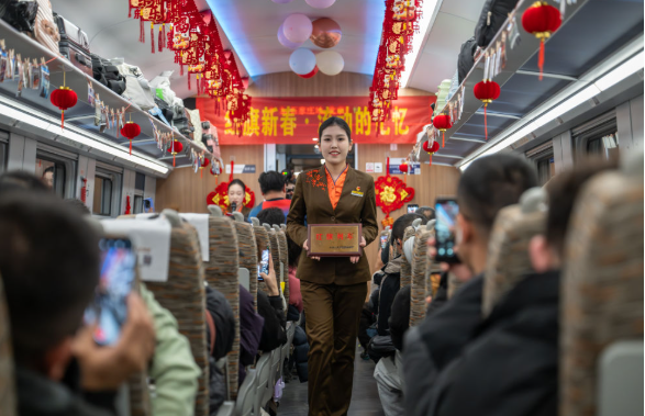 “列车春晚”是D38次列车延续多年的传统。这趟列车的前身可追溯至1949年开行的138次列车,从138次到38次、K38次、T38次、Z38次,再到如今的D38次,77年来,它历经多次更名,但“红旗列车”的金字招牌始终闪亮。