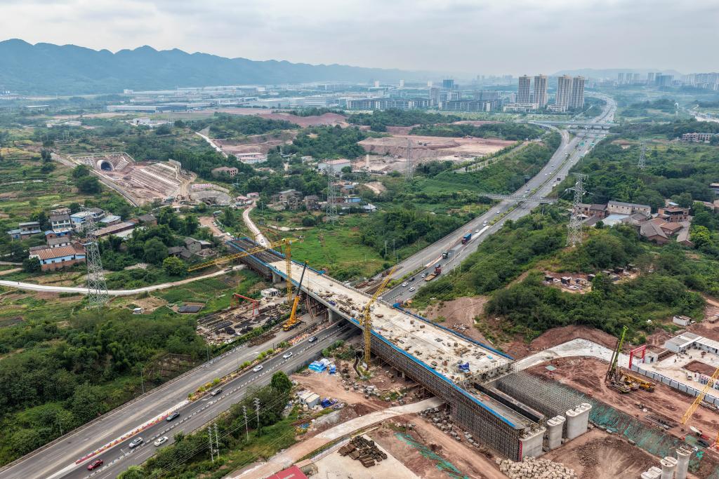 新华网:成渝中線高速鉄道·科学城駅六線道岔特大橋の接合完了 中国重慶市