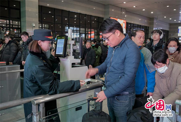 乘坐K4159次列车的乘客检票进站。中国网记者 马旷/摄