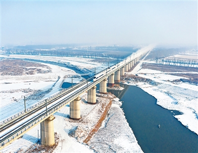 沿着哈大高铁线,动车组列车在皑皑白雪中行进。赵 旭摄